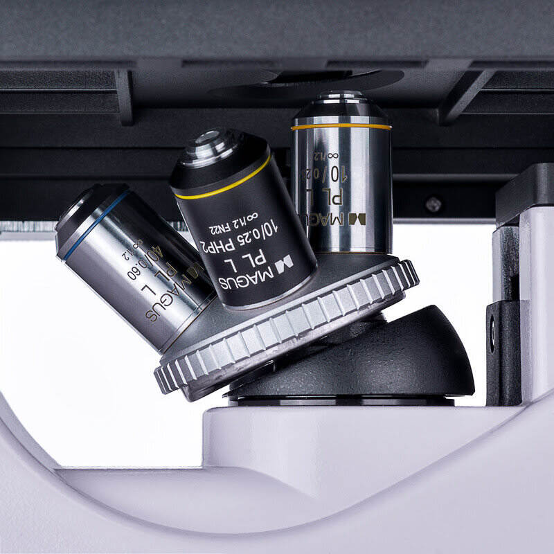 Планахроматические объективы скорректированы на бесконечность и имеют бо́льшее рабочее расстояние. В базовой комплектации MAGUS Bio VD300 LCD объективы: PL 10x/0,25, PL 20х/0,40, PL 40x/0,60, PHP2 10х/0,25 (для работы по методу фазового контраста). Опционально можно заказать: PL 4x/0,10, PHP2 20х/0,40 (фазовый), PHP2 40x/0,60 (фазовый).