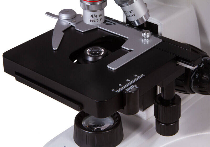 Удобство работы. Механический двухкоординатный столик Levenhuk MED 10T с препаратоводителем обеспечивает комфорт работы. Корпус микроскопа устойчив и долговечен, а все механизмы имеют плавный ход.