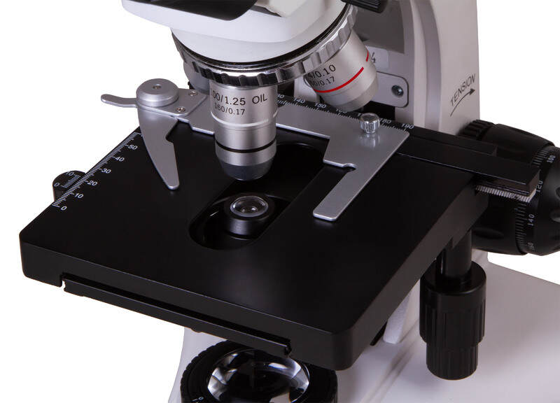 В комплектацию тринокулярного микроскопа Levenhuk MED 20T входят четыре полупланахроматических объектива с увеличением 4х, 10х, 40х, 100х. Линза на 100х позволяет проводить масляную иммерсию. Объективы на 40х и 100х защищены надёжными пружинящими оправами.