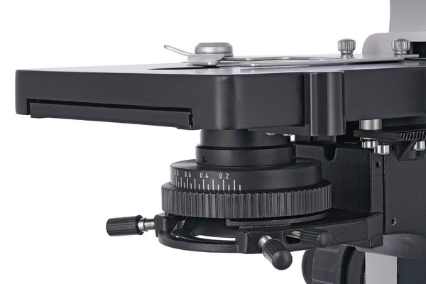 Двуслойный препаратный столик с возможностью смещения по двум осям обеспечивает удобную работу с образцами. Столик снабжён препаратоводителем.