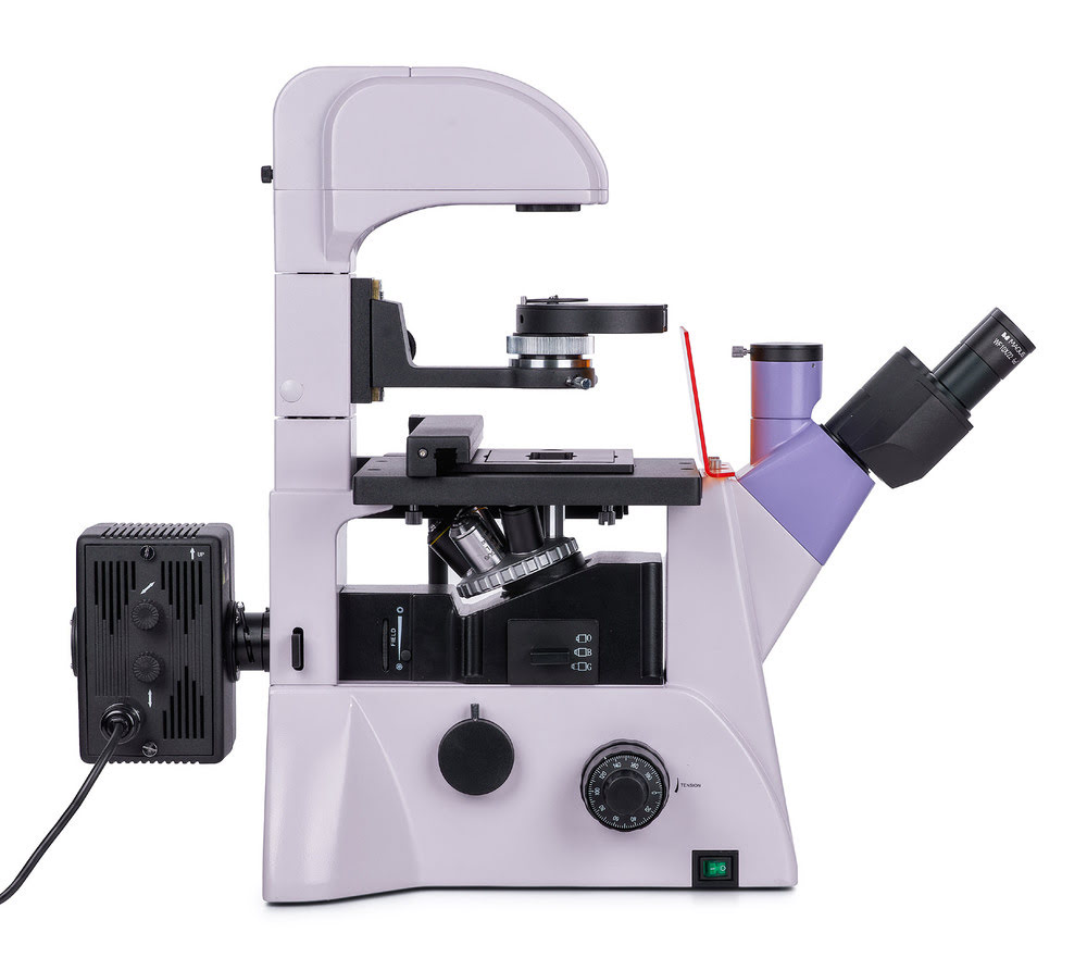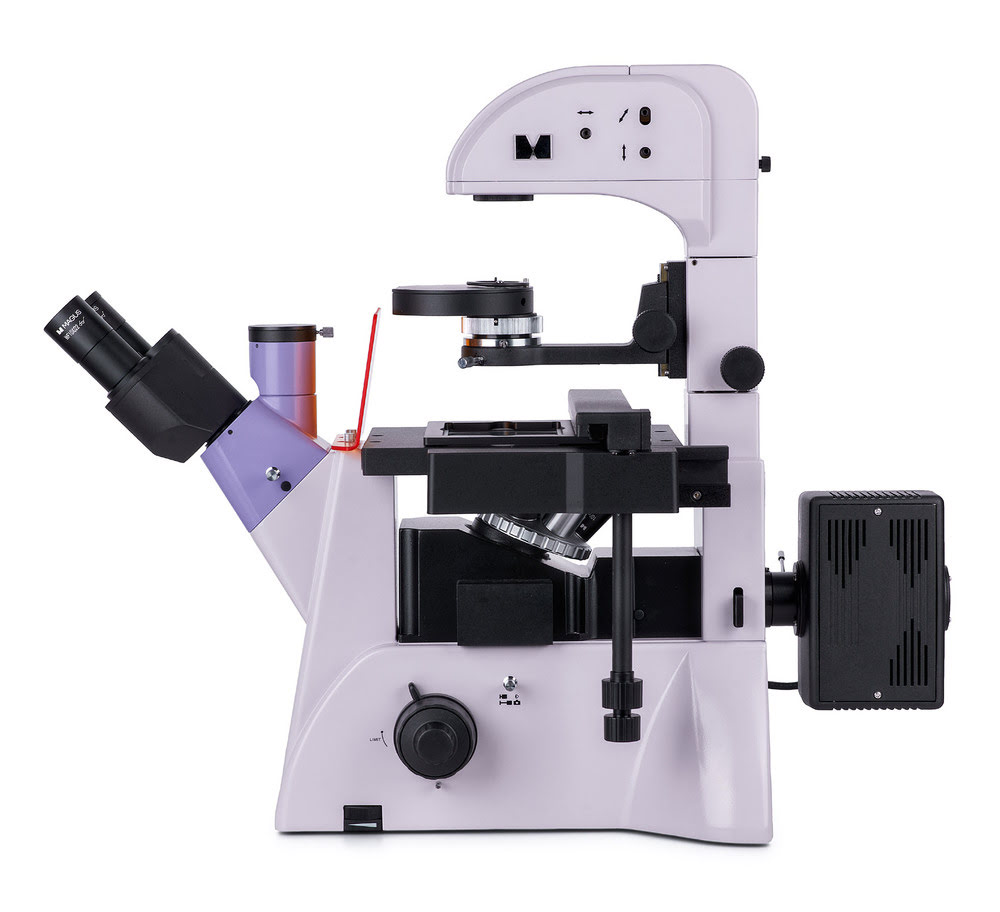 Инвертированный люминесцентный микроскоп MAGUS Lum V500 позволяет проводить исследования в отражённом (видимая люминесценция) и проходящем (светлое поле и фазовый контраст) свете и применяется в биохимии, фармакологии, медицине и других областях науки.