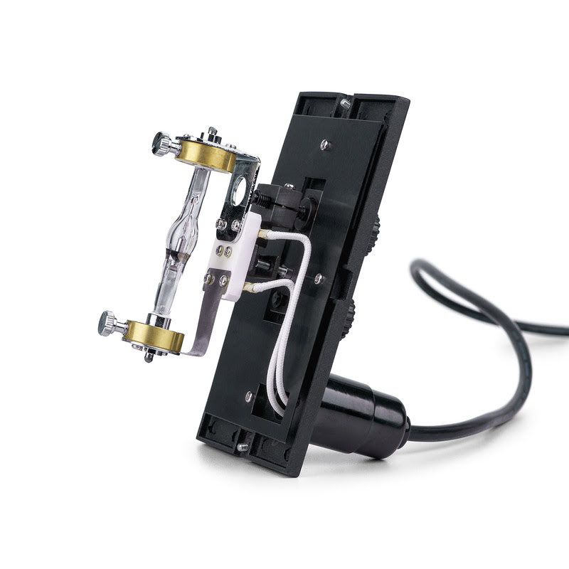 - Два осветителя: ртутная лампа 100 Вт и галогенная лампа 30 Вт с настройкой по Кёлеру;