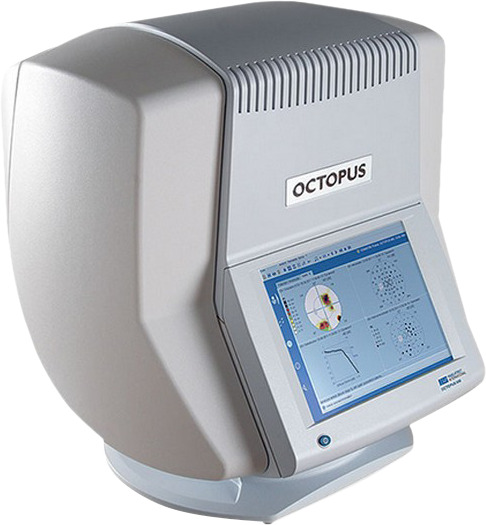Octopus 600 – анализатор контрастной чувствительности. Обеспечивает раннюю диагностику глаукомы. Два варианта исполнения: Octopus 600 Basic и Octopus 600 Pro. Метод Pulsar, стандартная статическая компьютерная периметрия W/W.