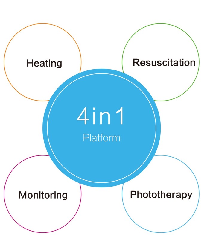 Возможности неонатального реанимационного стола Comen BQ80: обогрев, уход, наблюдение, фототерапия. Мониторинг основных жизненных показателей не требует дополнительного оборудования. Керамическая трубка и теплопроводящий гелевый матрац повышают эффективность обогрева. LED-светильник.