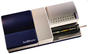 Анализатор мочи DocUReader разработан специально, чтобы улучшить точность и безопасность оценки мочеизмерительной полоски, используя световой и фотометрический считыватель, чтобы обнаружить цветовые изменения на тестируемых полосках. Анализаторы также помогают в обработке и выдаче результатов данных тестов, предлагая хранение данных и автоматическую обработку данных в медицинских лабораториях. Предназначен для определения 11 параметров в моче.