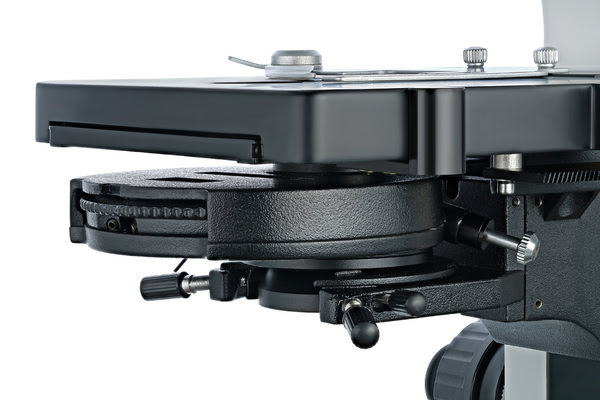Продуманная конструкция. Конденсор, держатель световых фильтров и лампа подсветки расположены под двуслойным столиком с препаратоводителем, который можно смещать по двум осям, что упрощает работу с микропрепаратами. Яркость светодиодной подсветки регулируется (в том числе – по Келеру).