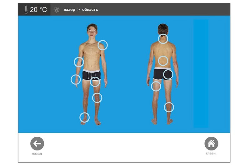 Предустановленные автоматические программы по патологиям позволяют с бо́льшей эффективностью прорабатывать конкретные зоны тела: шейный отдел, кисть, поясничный отдел, плечо, локоть, тазобедренный сустав, колено, голеностоп.