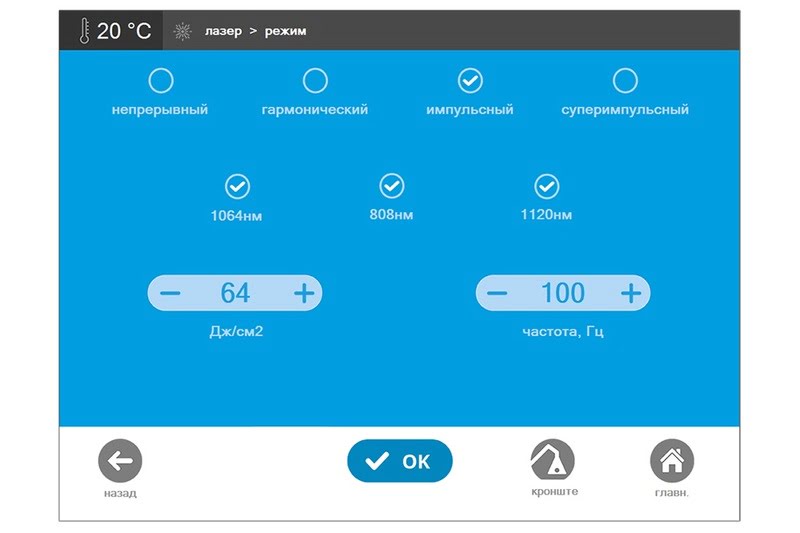 Режимы работы терапевтического лазера QMD Helios 24 Вт