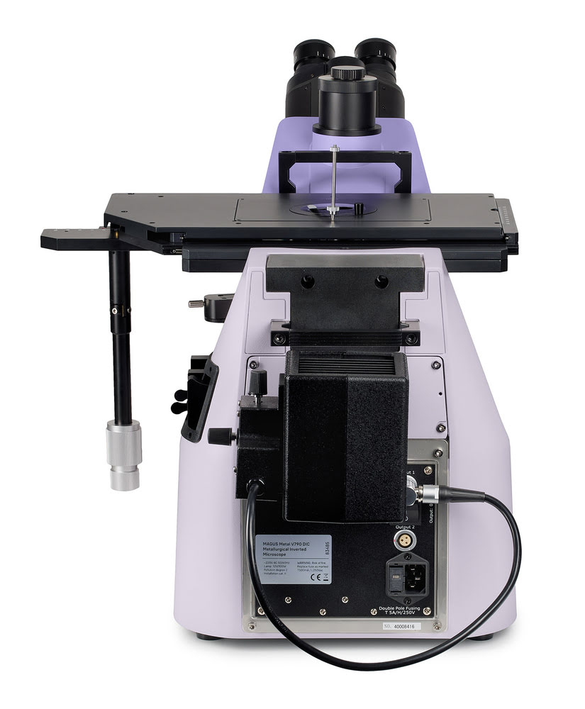 MAGUS Metal V790 DIC – инвертированный металлографический микроскоп с увеличением 50–1000 крат (опционно до 1500 крат) и бесконечной оптикой (план-полуапохроматы и план-апохроматы) для работы с непрозрачными материалами до 30 кг (геометрия не ограничена). Методы исследования: светлое и темное поле, ДИК, простая поляризация. Элементы осветительной системы центрируются.