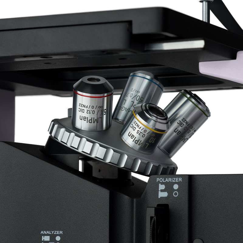 В комплект MAGUS Metal V700 DIC входят планахроматические объективы с корректировкой на бесконечность и увеличенным рабочим расстоянием. Вместе с окулярами они обеспечивают увеличение 50–500 крат (опционно до 2500 крат).