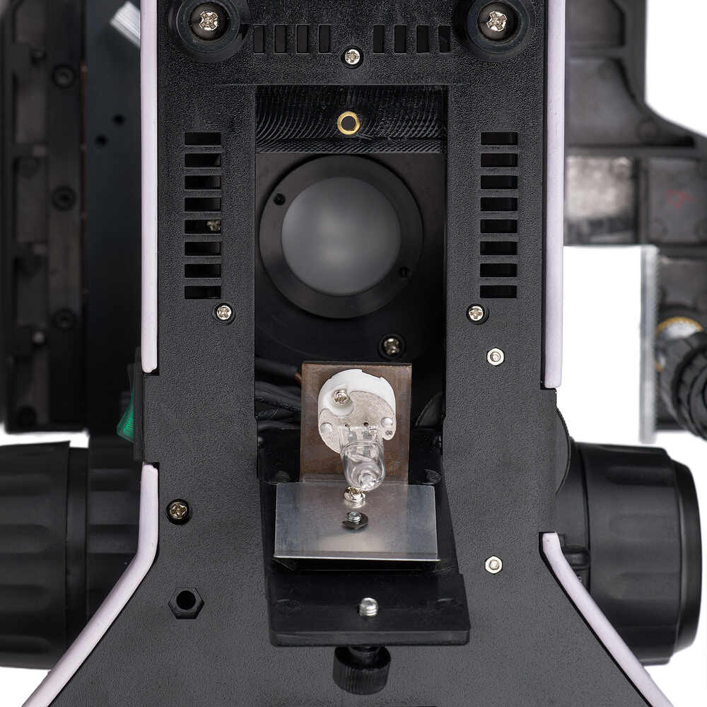 - Галогенная лампа 50 Вт – отражённый свет – для работы по методу светлого и тёмного поля с непрозрачными плоскопараллельными шлифами с полированной исследуемой поверхностью. Увеличенная мощность обеспечивает комфорт работы в темном поле.