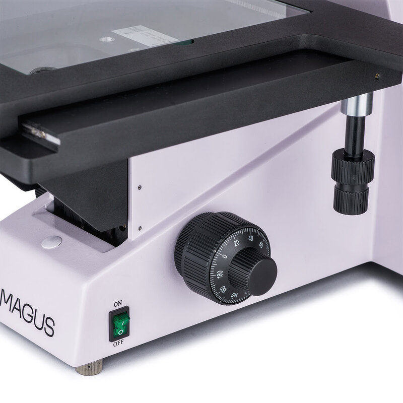 В MAGUS Metal 650 две диафрагмы: встроенная апертурная и полевая, а также светофильтры. Обе диафрагмы и источник света центрируются. В комплект входят встроенный анализатор и съемный поляризатор с вращением в диапазоне 0–360°.