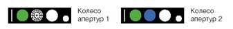 -Выбор из 5 апертур. Для широкого и узкого зрачков. Включают в себя щель, фиксационную звездочку с линейкой или кобальтовый голубой фильтр и «бескрасный» (свободный от красного) фильтр для улучшения контрастности.