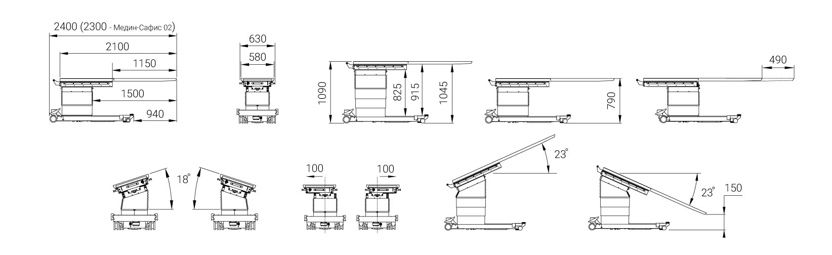 - Продольное перемещение панели стола - электромеханическое (кроме МЕДИН-САФИС 02)