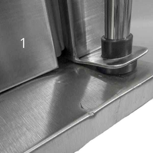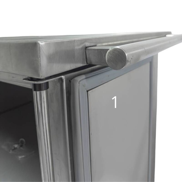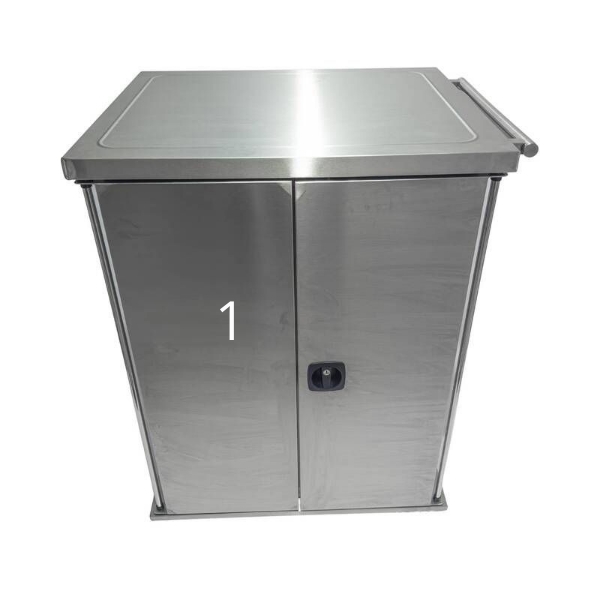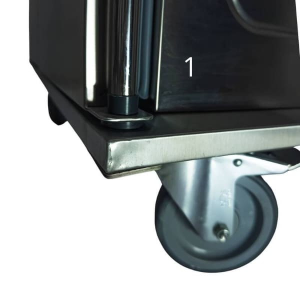 Надежность и долговечность тумбы обеспечивает материал изготовления – нержавеющая сталь марки AISI 304. Прорезиненные опоры повышают устойчивость, а четыре колеса и ручка для перевозки – простоту перемещения.